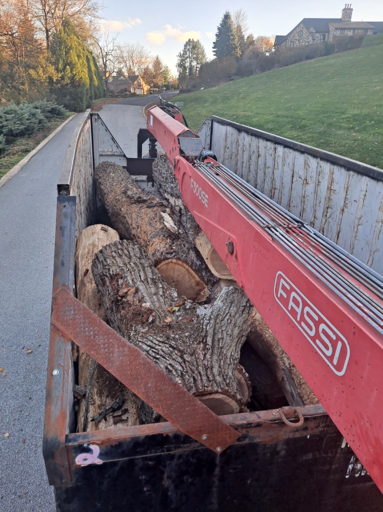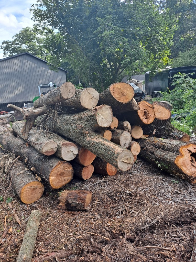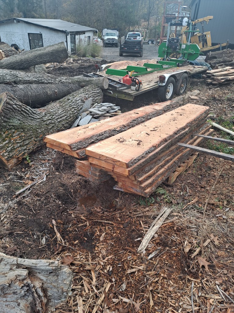 The wood that gets hauled away from our large tree jobs gets turned into usable lumber. We have a saw mill at our shop where the logs are turned into lumber for craftsman to build with