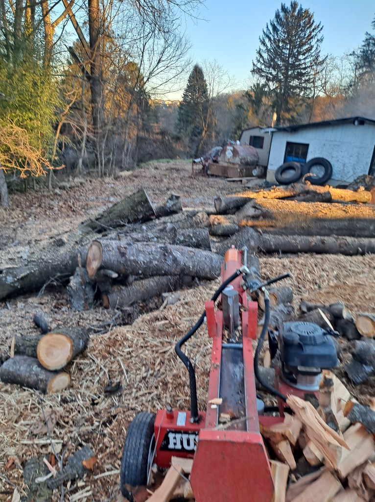 Some wood just doesnt make sense to run through the sawmill for various reasons and this ends up in the firewood pile. We also put all the scraps from the sawmill in this pile too. A majority of our firewood is hardwood. This is the type of wood to use for heat and burning indoors. Softwood can be burned outside and in fire pits. We also have a seperate pile of cherry and fruit wood for those who enjoy smoking various types of meat. Some also will use hardwoods such as oak, maple, or hickory as well for smoking.